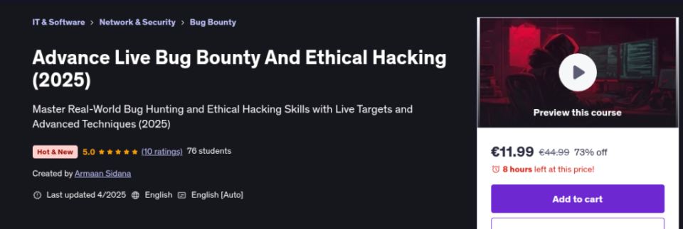 Advance Live Bug Bounty And Ethical Hacking (2025) is your ultimate destination to master real-world ethical hacking and live bug bounty skills. Designed for beginners, intermediates, and experienced hackers, this course offers live hacking sessions, real-world simulations, and step-by-step techniques used by top security researchers in 2025.