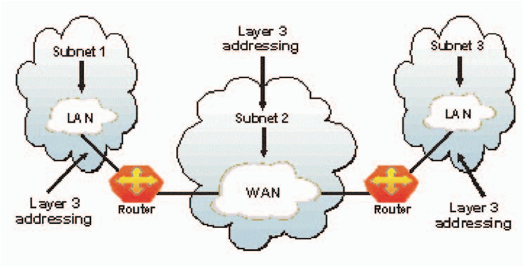 To make it easier to manage the network and control the flow of packets, many organizations separate their network layer addressing into smaller parts known as subnets. Routers use the network or subnet portion of the IP addressing to route traffic between different networks. Each router must be configured specifically for the networks or subnets that will be connected to its interfaces.